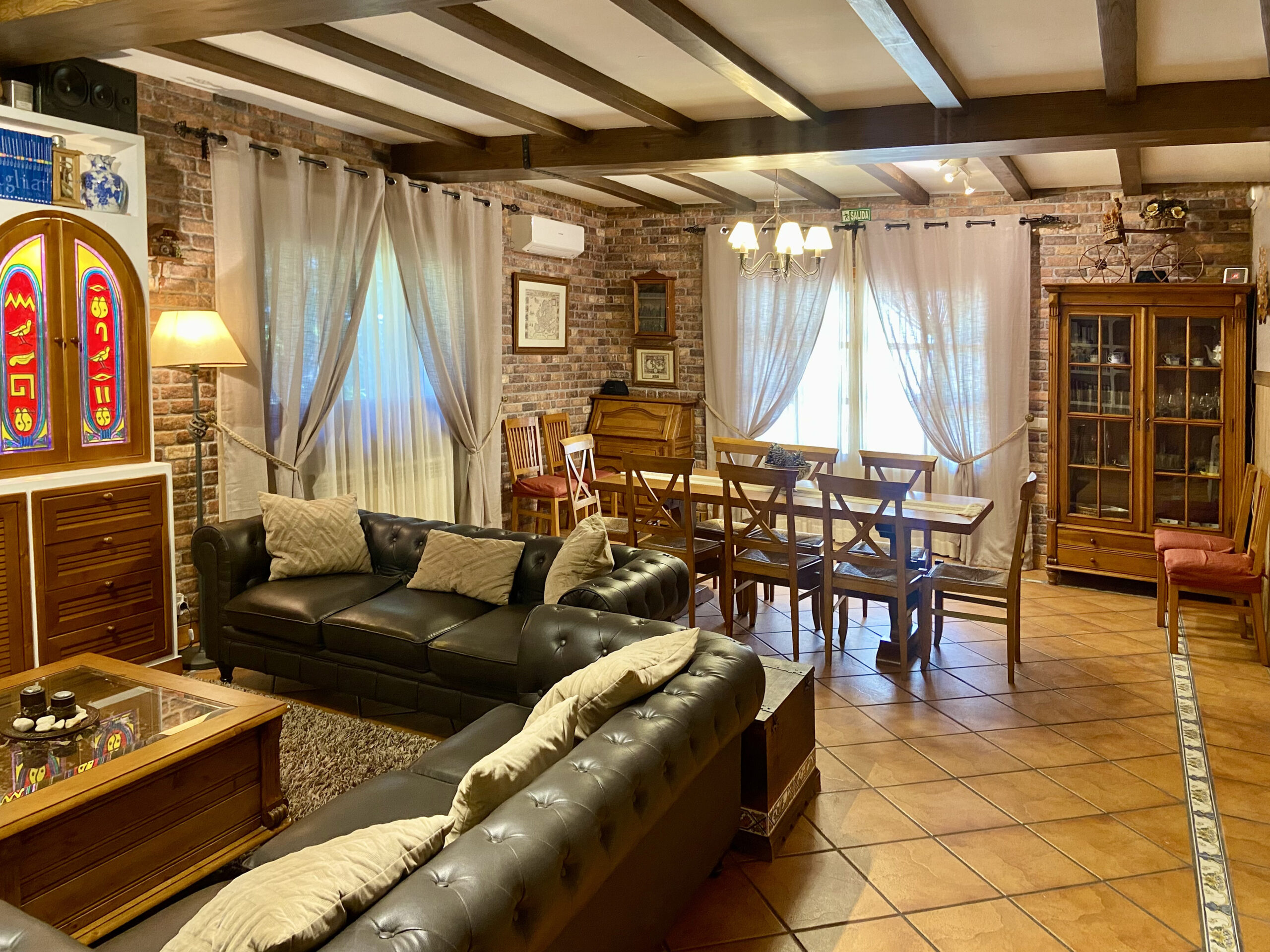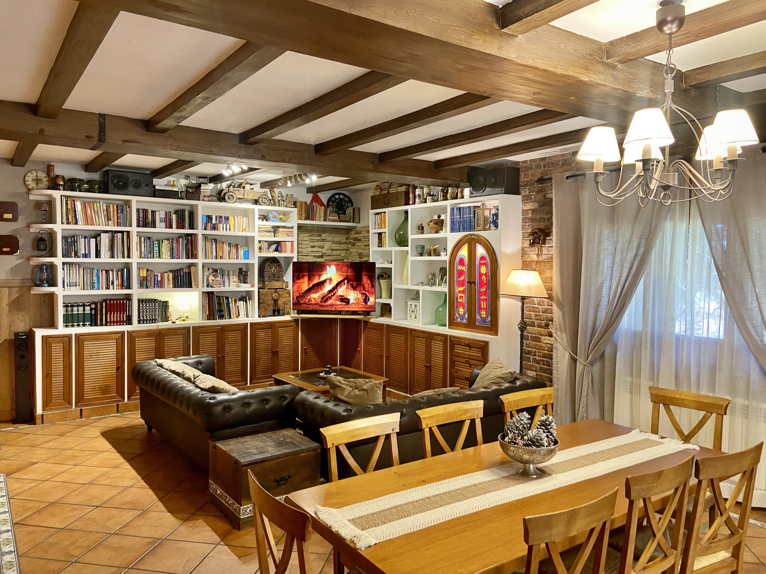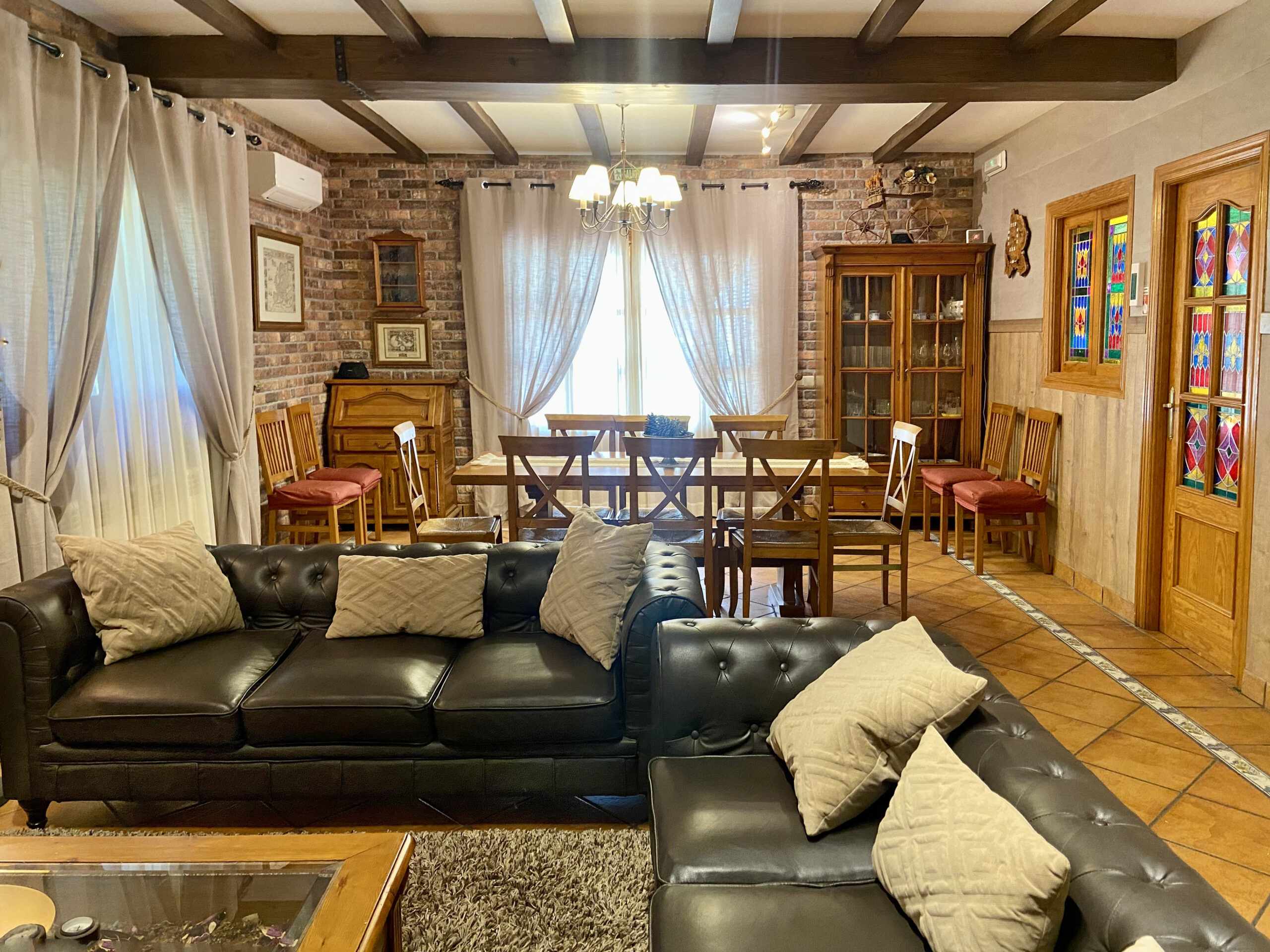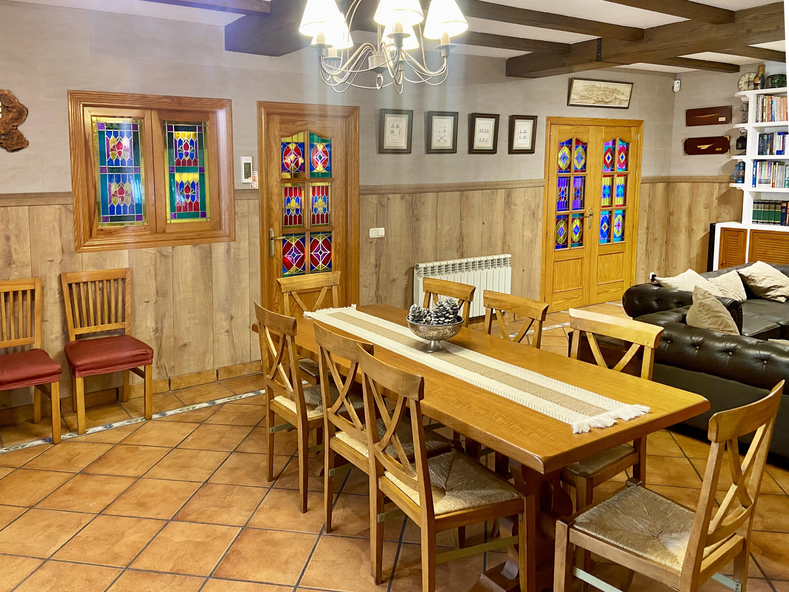 Smart TV de 50 pulgadas y sonido Dolby Surround que hace que parezca que estás en el cine. Mesas de madera maciza y sus sillas para hasta 18 comensales.