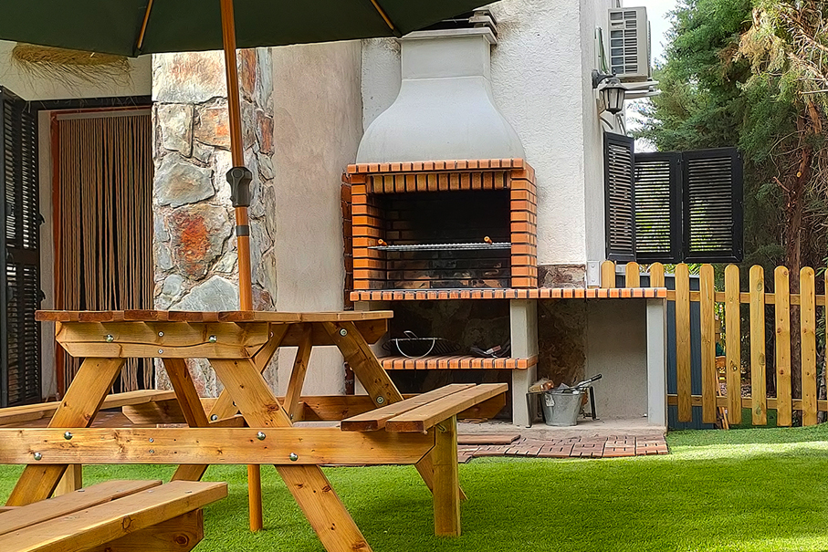 Smart TV de 50 pulgadas y sonido Dolby Surround que hace que parezca que estás en el cine. Mesas de madera maciza y sus sillas para hasta 18 comensales.